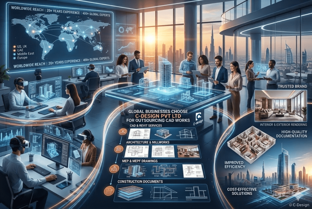 C-Design Pvt Ltd is one of the most trusted outsourcing companies providing CAD, BIM, architectural design, and 3D visualization services to global clients.